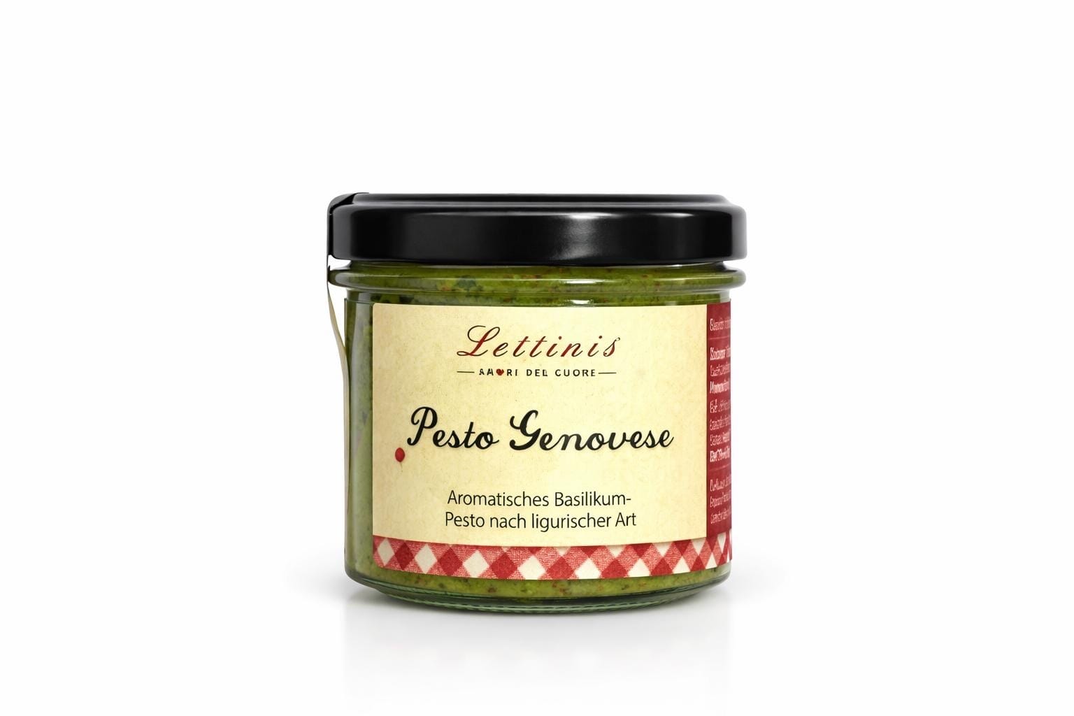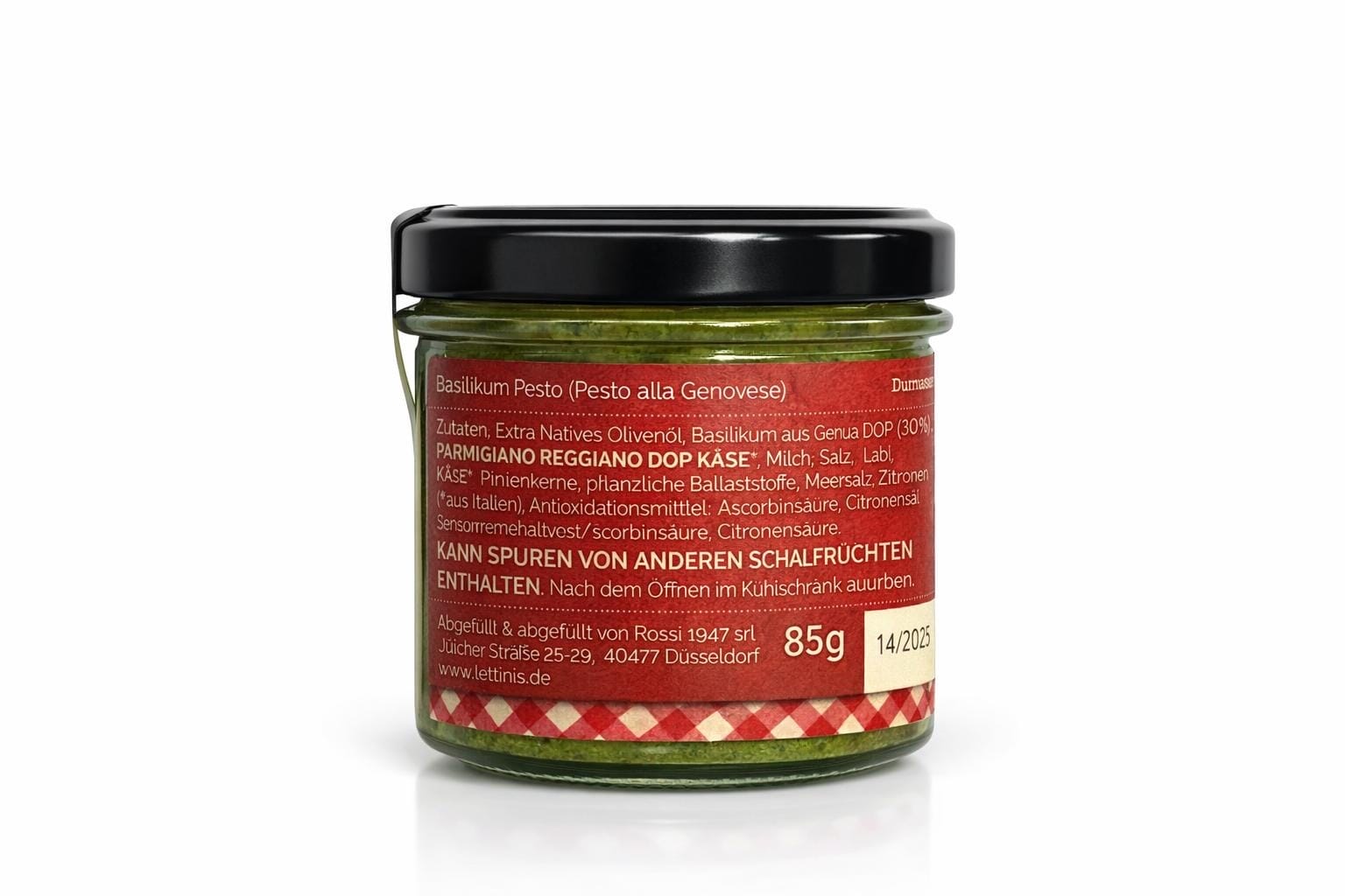 Probiere das authentische Pesto al Genovese mit einem hohen Anteil an Basilikum, Olivenöl, Pinienkernen, Parmigiano Reggiano, Pecorino und Knoblauch bietet dieses Pesto einen unvergleichlichen Geschmmack.